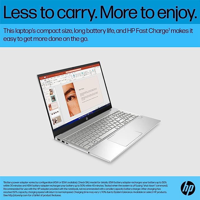 • Display & Graphics: 39.6 cm (15.6") diagonal, FHD (1920 x 1080), IPS, micro-edge, anti-glare, Low Blue Light, 300 nits, 100% sRGB |Graphics: Intel Iris Xᵉ Graphics