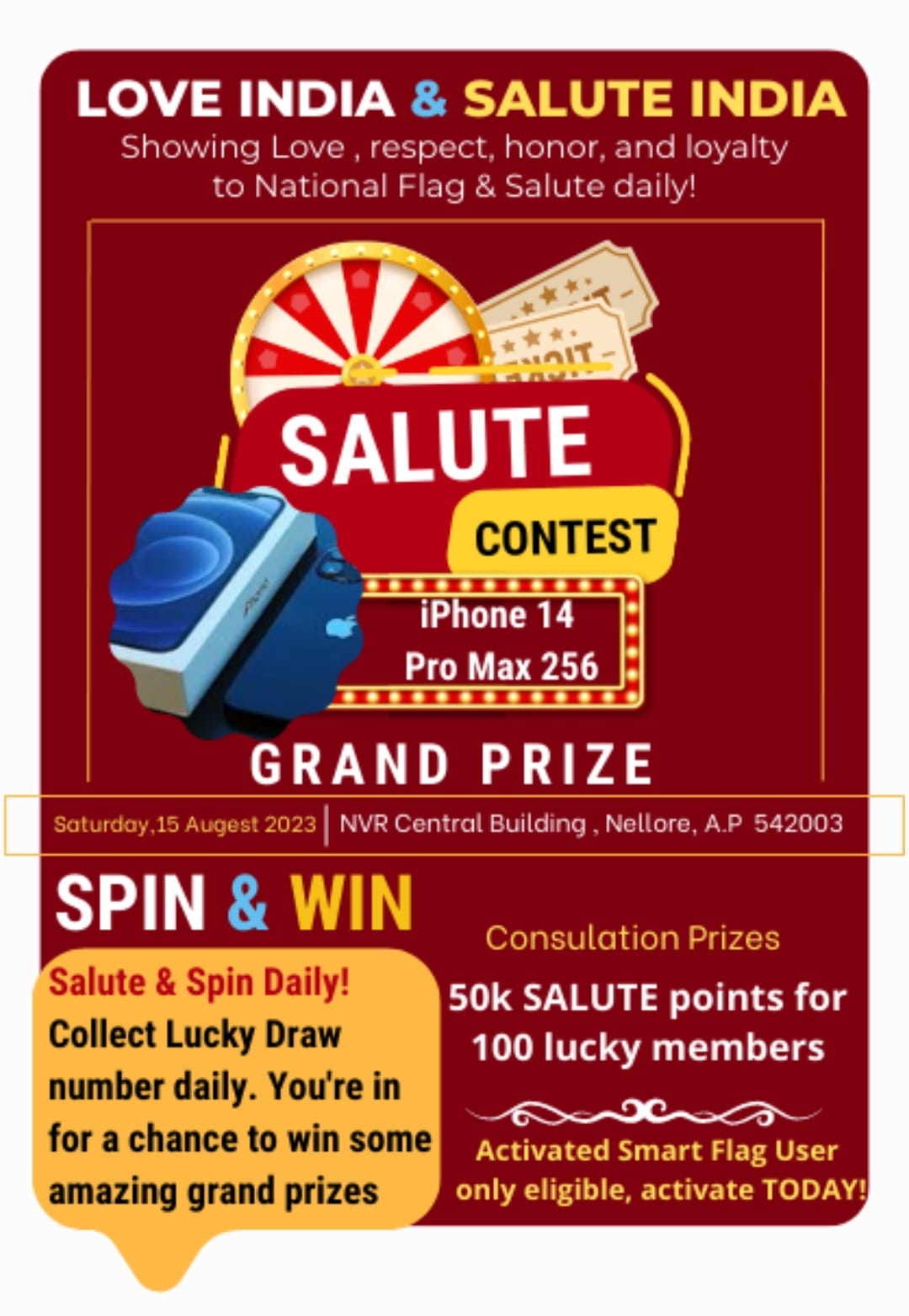 Members Can win Lucky Draw Prizes listed dates 100 prizes with Gift Items and salute Points❞